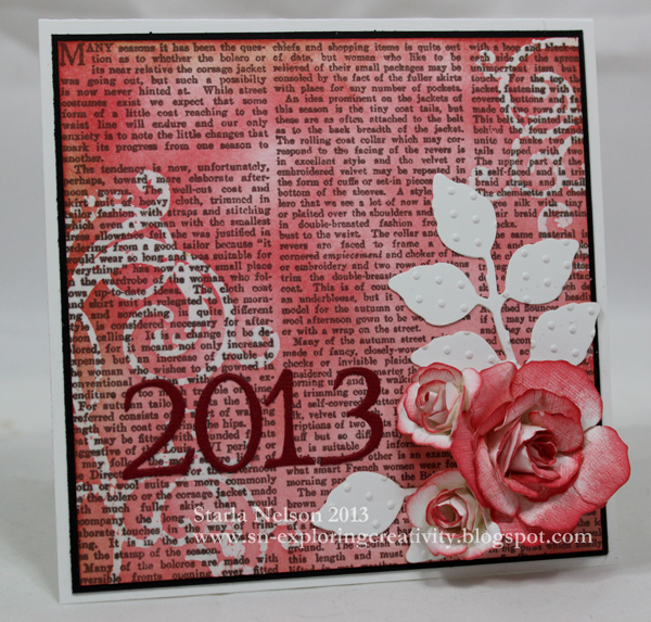 all day to make the card. I will give myself credit for the fact that I spent quite a bit of time experimenting with the background technique until I got the look I wanted.